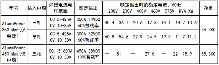 ? AlumaPower 350 MPa或450MPa 焊接電源