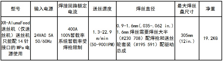 圖中XR-AlumaFeed一元化鋁焊系統(tǒng)包含7.6米長(zhǎng)XR-Aluma-Pro焊槍,AlumaPower 450MPa電流。同時(shí)可配XR-Pistol Grip 焊槍。